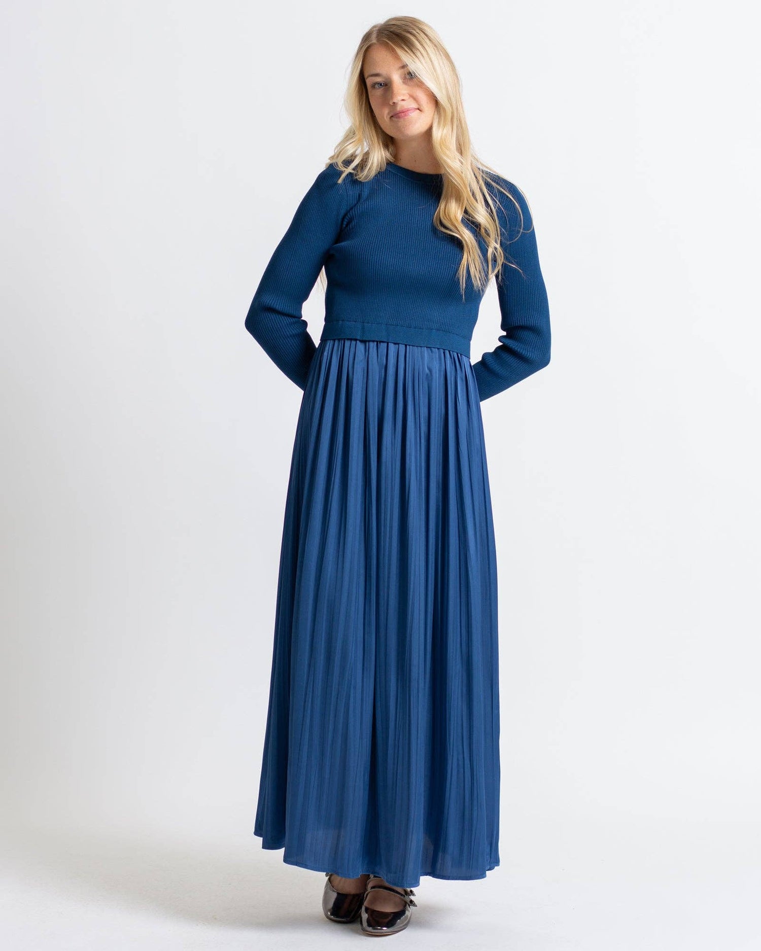 Soho Blue Hyrbid Sweater Satin Maxi Dress